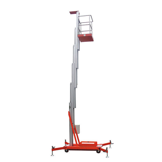 الرفع الألمنيوم ذو الصقر الواحد يعتمد سبيكة ألومنيوم عالية الجودة لتقليل الوزن الصافي للجسمالألومنيوم سبائك العمل الجوي رجل منصة رفع سيكون أسهل بكثير للمشغل للتحرك حولهايستخدم على نطاق واسع في السوبر ماركت، مركز التسوق، المصنع، الفندق، المطعم، المحطة، المسرح، قاعة المعارض، الصيانة الداخلية والخارجية.